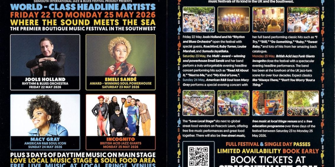 The Sidmouth Jazz and Blues festival is not to be missed, attracting audiences from across the Southwest. Come and enjoy a programme of headline concerts of regional, international and local music talent.